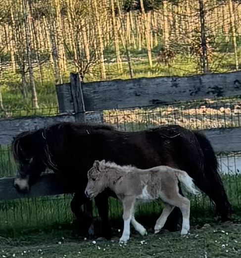 Née le 24 avril 2025, pouliche PP, mini shetland.